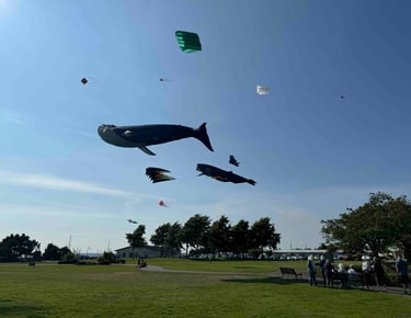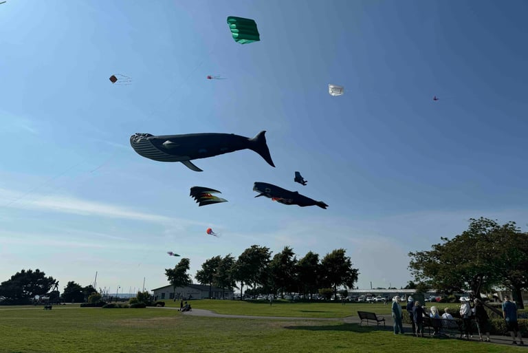 Bellingham stole our hearts. The waterfront views were stunning, and the giant kites — shaped like whales and other whimsical creatures — were mesmerizing. The kids were gifted two kites from local kite enthusiasts, which made the moment even more special.